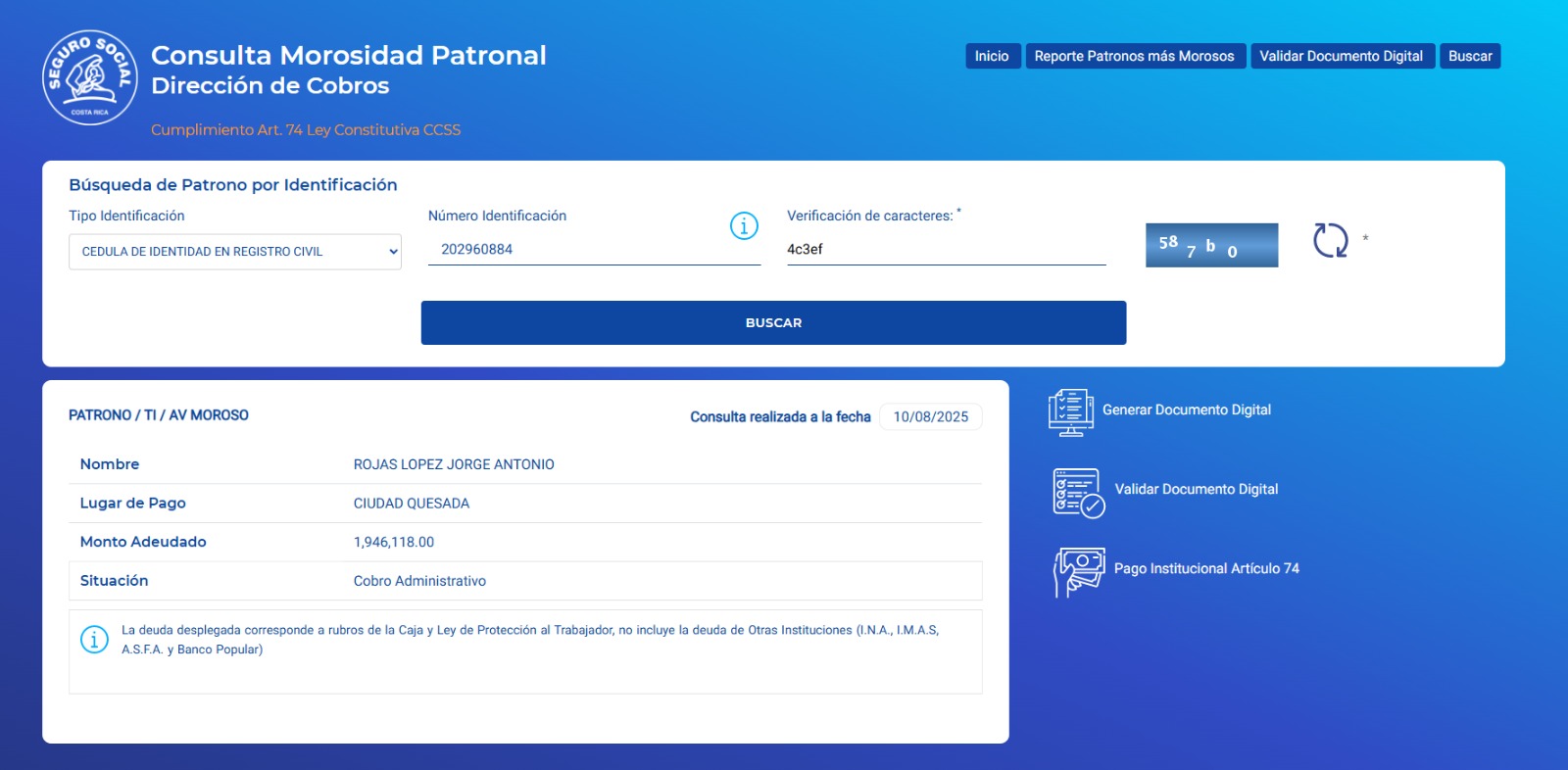 El historial financiero del legislador es otro bochorno. Es patrono moroso ante la CCSS por ₡1.946.118,00. Pero la joya de la corona es una deuda con el Banco Nacional por ₡137.807.386,70, en cobro judicial que adquirió desde enero de 2023, cuando ya ejercía como diputado y solamente realizó un pago, en febrero de 2023.